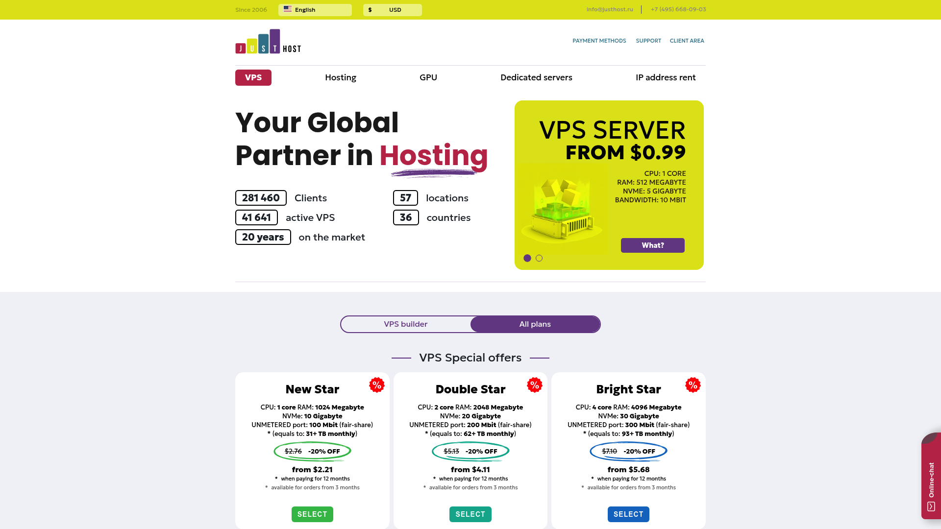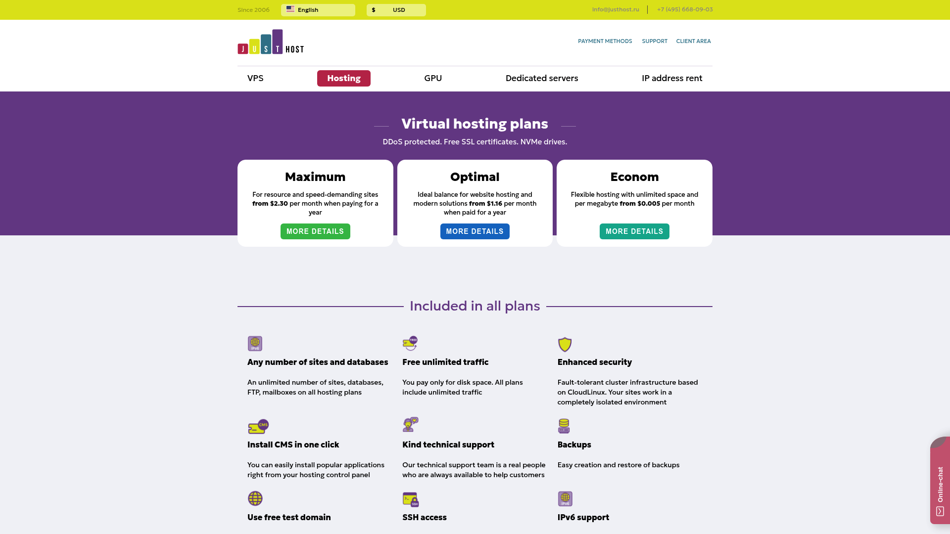- VPS/VDS-хостингВиртуальный хостингВыделенный серверЗащита от DDoS